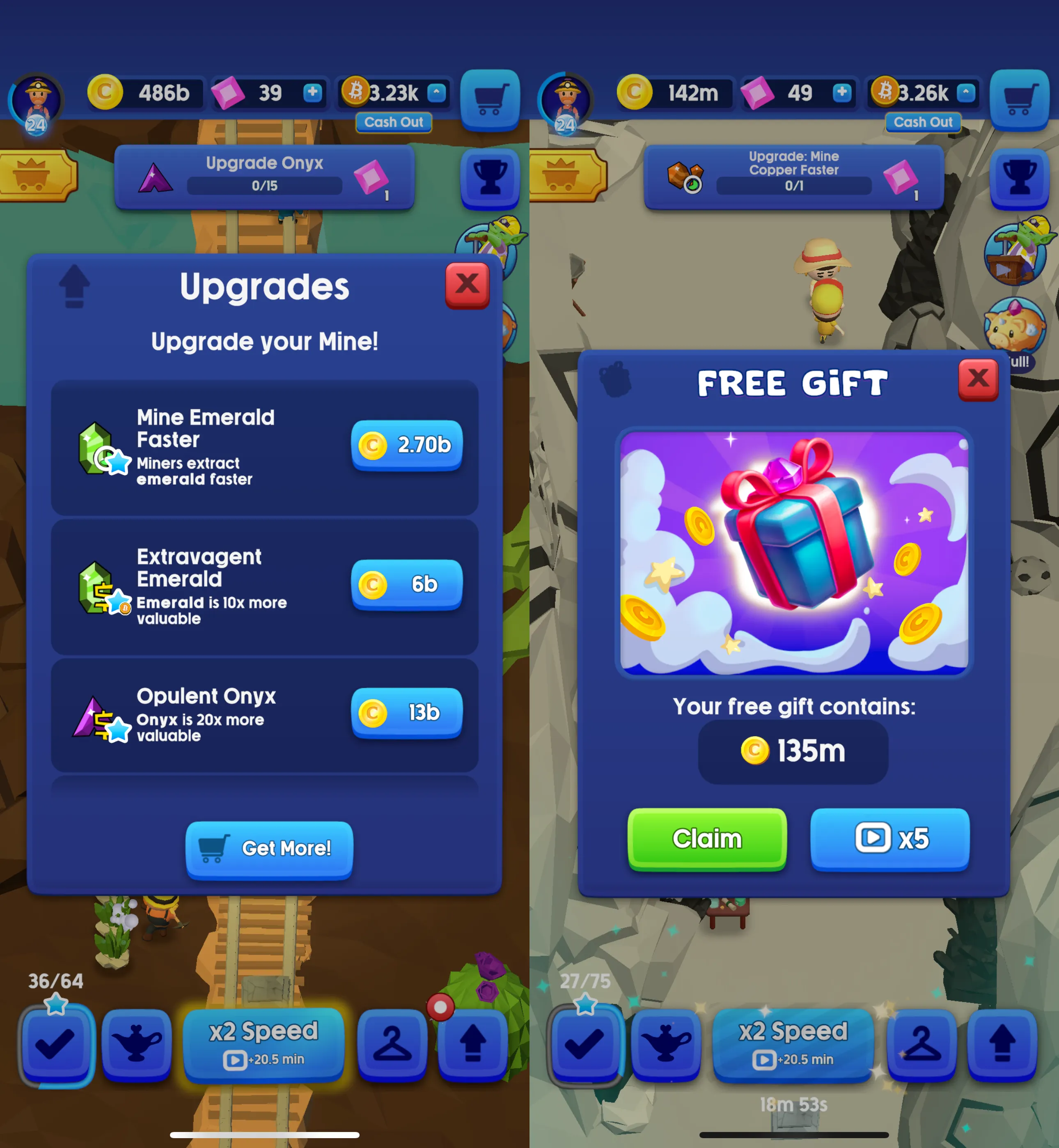 Idle Mine tasks you with mining digital gems and upgrading your digging operation, dropping you bits of Bitcoin here and there as you complete missions and hit certain milestones. It’s hardly riveting stuff, and as the title suggests, the game more or less plays itself—you’ll just need to tap a button and collect power-ups every so often to keep boosting your income.