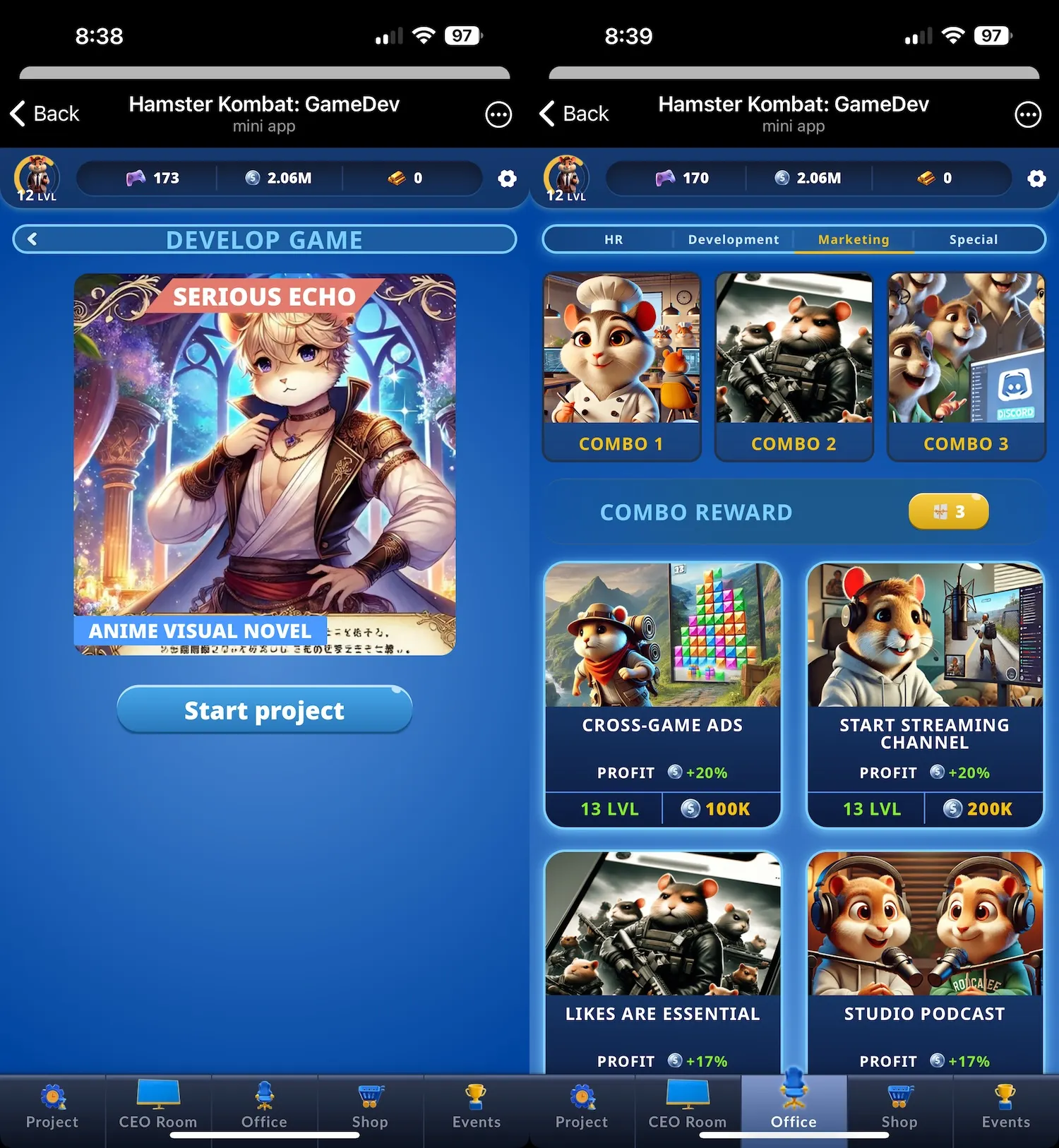 As teased, Hamster Kombat: GameDev Heroes turns the original tap-to-earn premise into a video game development sim, where you recruit programmers and artists, churn out games, and earn more coins along the way. It has the familiar number-go-up vibe that drove hype around the original game and many copycats, but with a new look.