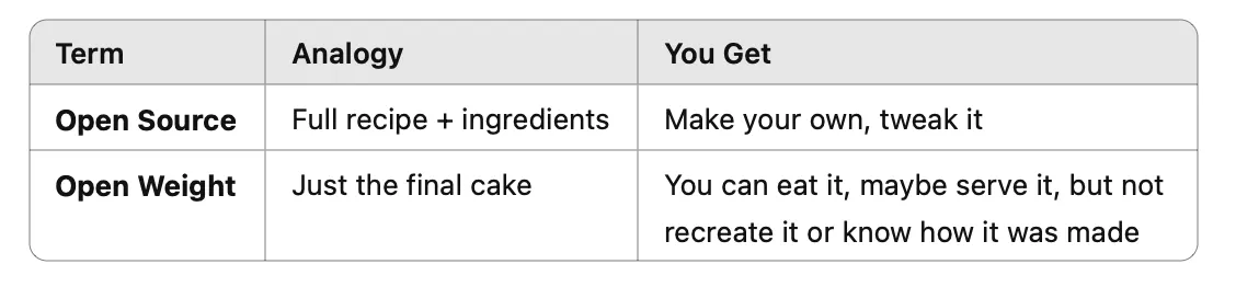 That gives users the ability to modify and redistribute the model. An open-weight model is less open: users have the ability to fine-tune it, but cannot build it from scratch because they don’t have access to key elements such as the training dataset or the architecture.