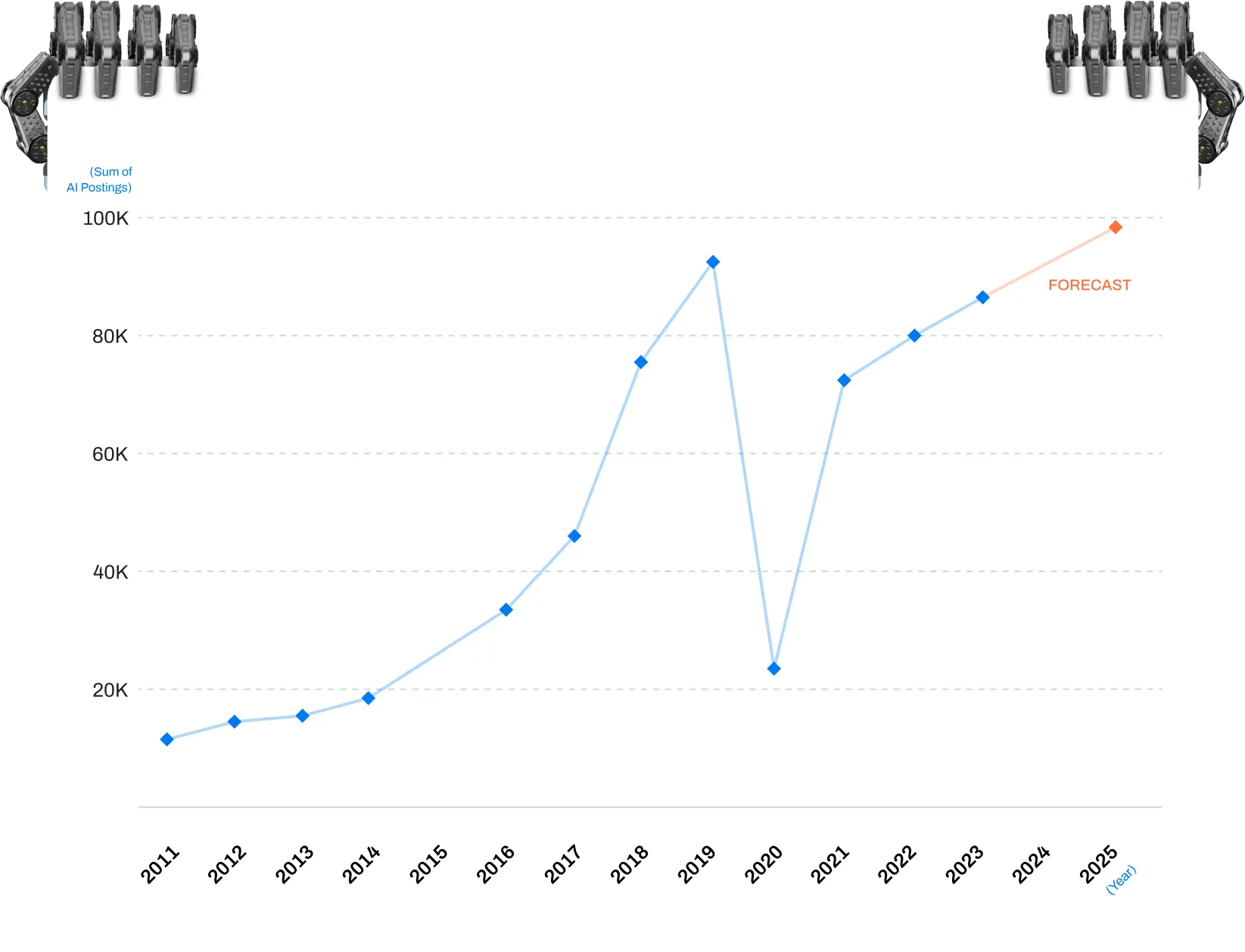 "Proyectamos que para 2024, potencialmente habrá más de 131.000 empleos relacionados con la IA en el mercado de la informática. Este número sustancial indica el rápido crecimiento y la demanda de experiencia en IA en el mercado laboral", dice el estudio.