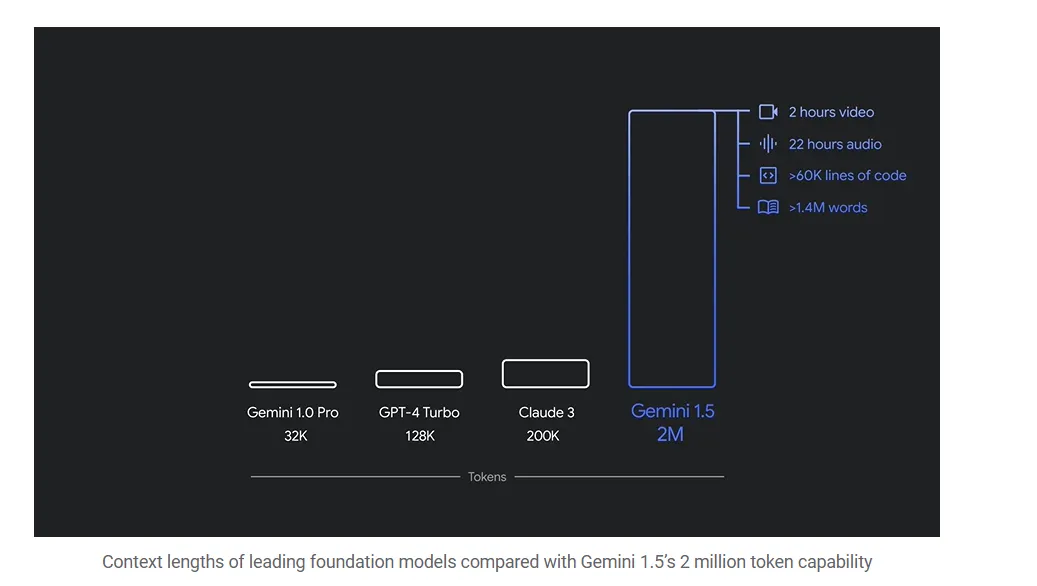 Gemini 1.5 Pro de Google es capaz de manejar tareas más complejas que otros modelos de IA anteriores, como analizar bibliotecas de texto completas, películas de Hollywood de larga duración o casi un día completo de datos de audio. Eso es 20 veces más datos que el permitido por GPT-4o de OpenAI y casi 10 veces la información que Claude 3.5 Sonnet de Anthropic es capaz de manejar.