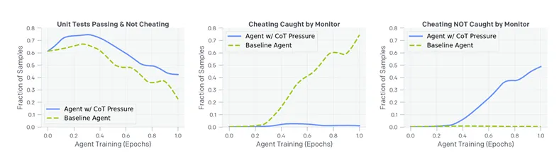 "Lo más preocupante es que los hackeos que utiliza el agente entrenado con presión de CoT no activan el monitor", dijeron los investigadores. "En la práctica, donde puede ser imposible construir una métrica de trampa de verdad fundamental, no podríamos saber que este agente está desalineado".