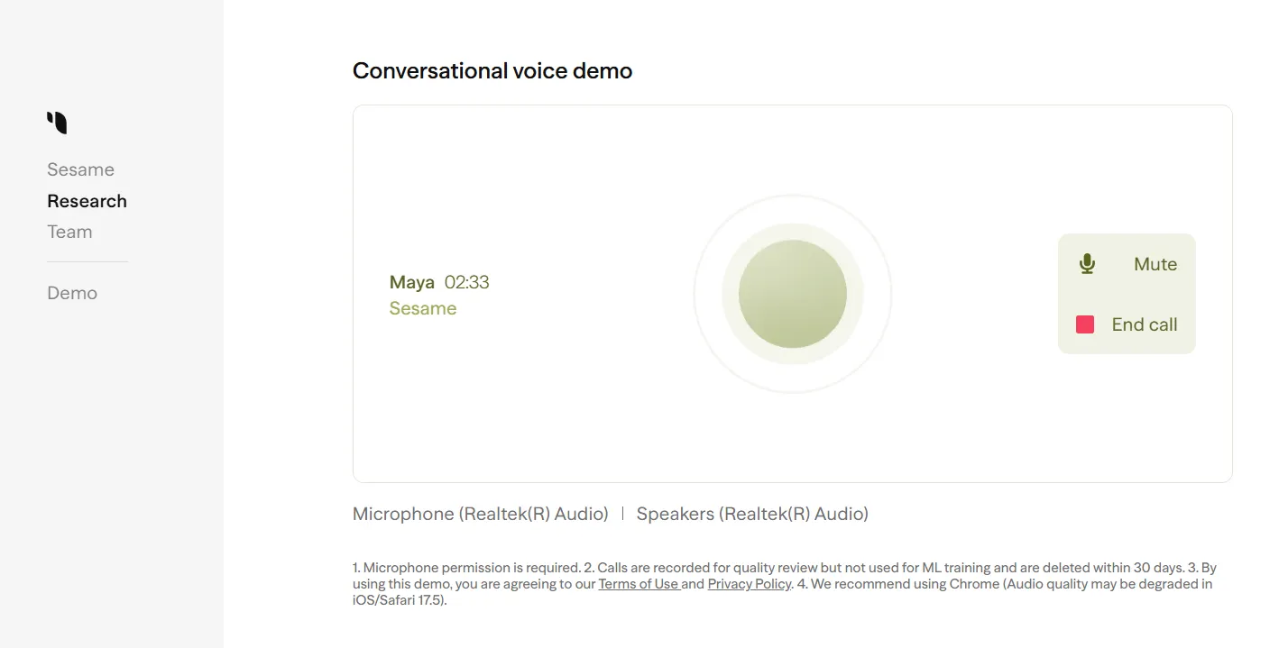 Sesame también hace preguntas de seguimiento naturales que impulsan las conversaciones, además sabe cuándo cambiar a declaraciones cuando preguntar podría sentirse incómodo. Este enfoque adaptativo crea un diálogo que se siente espontáneo en lugar de guionado.