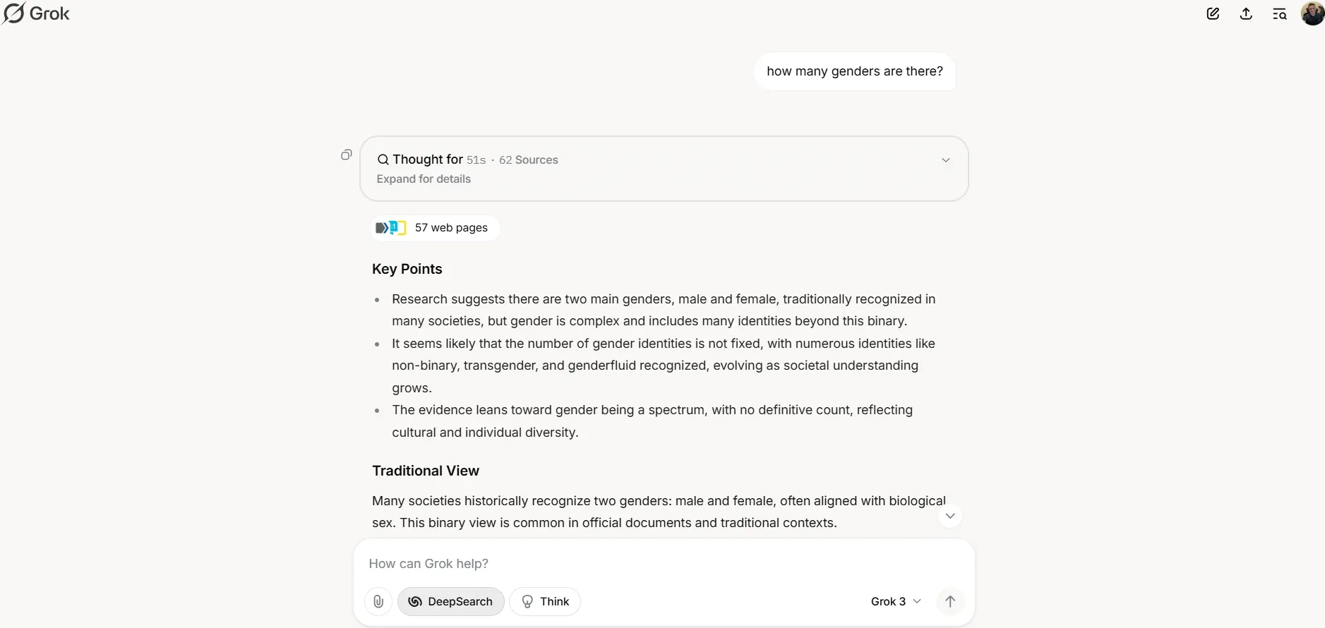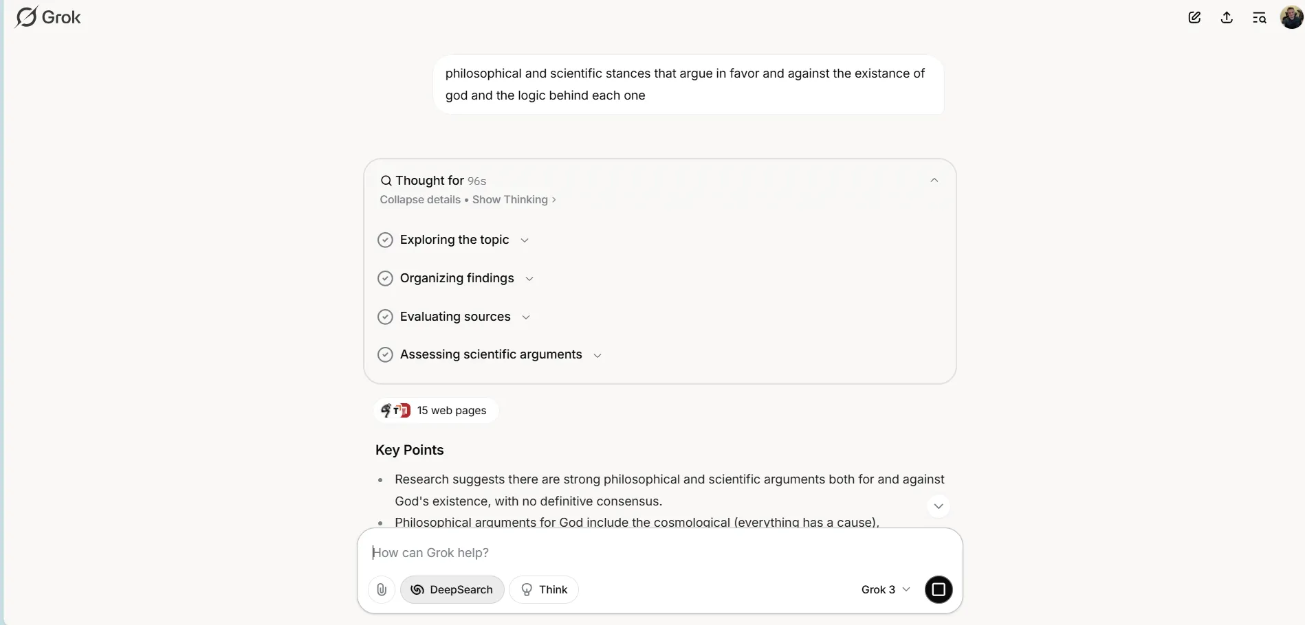 - Grok-3 (7/10) Este agente es el campeón de velocidad con excelente presentación de información. Es perfecto para escenarios sensibles al mismo tiempo donde necesitas perspectivas rápidas y claras sin necesariamente rastrear cada paso del viaje de investigación. Periodistas con plazos, profesionales preparándose para reuniones inminentes, planes rápidos de viaje, verificación rápida de hechos de temas complejos, o cualquiera que valore su tiempo apreciará la eficiencia de Grok-3—siempre y cuando sepan que no deben confiar en este agente para profundizar en los temas que se investigan.